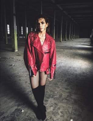 На фотографіях Паперна позує у шкіряній куртці на голе тіло. Обличчя дівчини перемазано брудом.